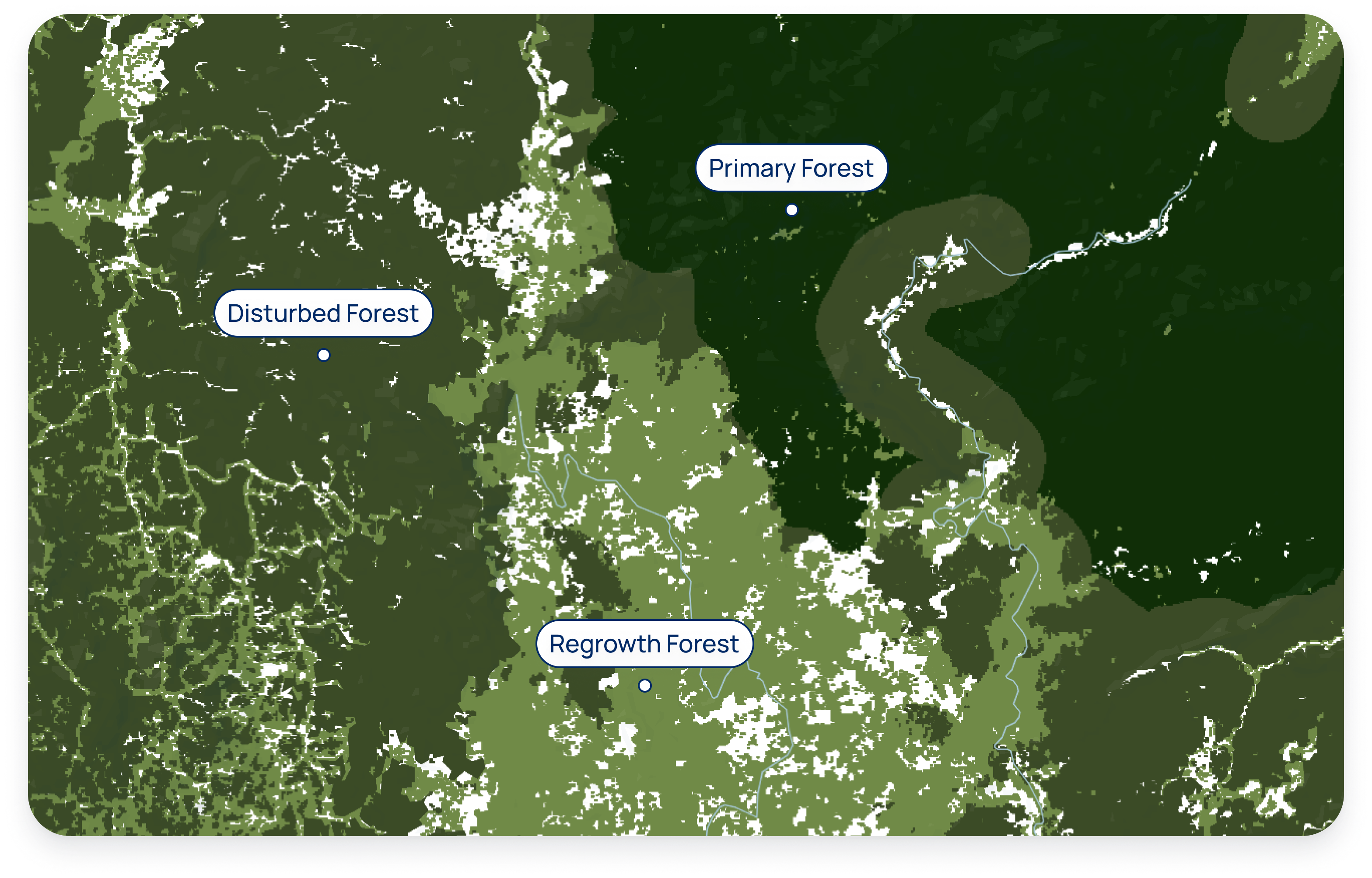 Regrowth forest: All remaining forest that cannot be classified as either primary or disturbed, including secondary forest through reforestation, or afforestation after other dominant land use. A secondary forest is a forest that has been logged or heavily degraded and has recovered naturally or artificially. This layer typically has a lower conservation value, and includes HCS Young Regenerating Forest.