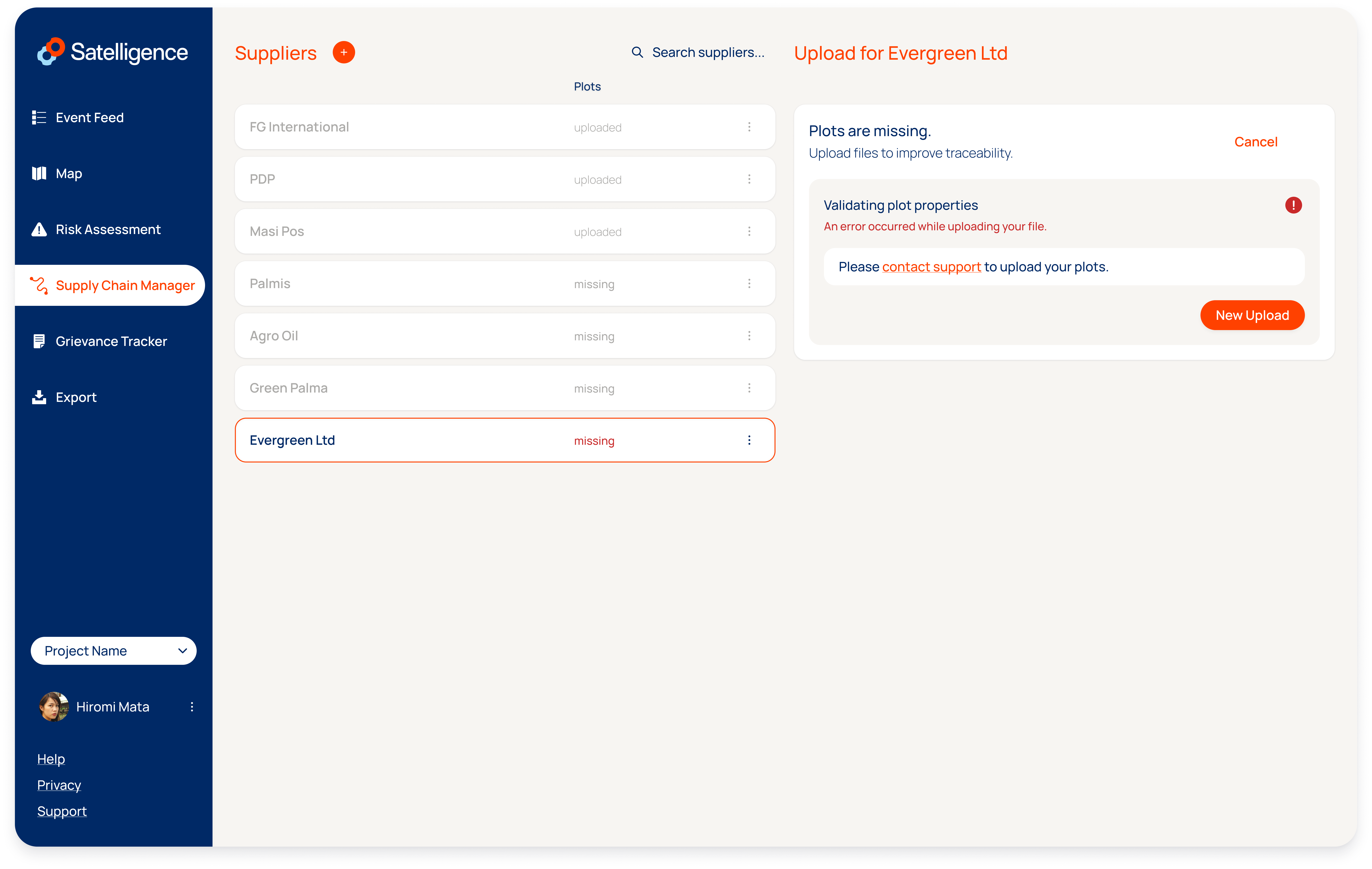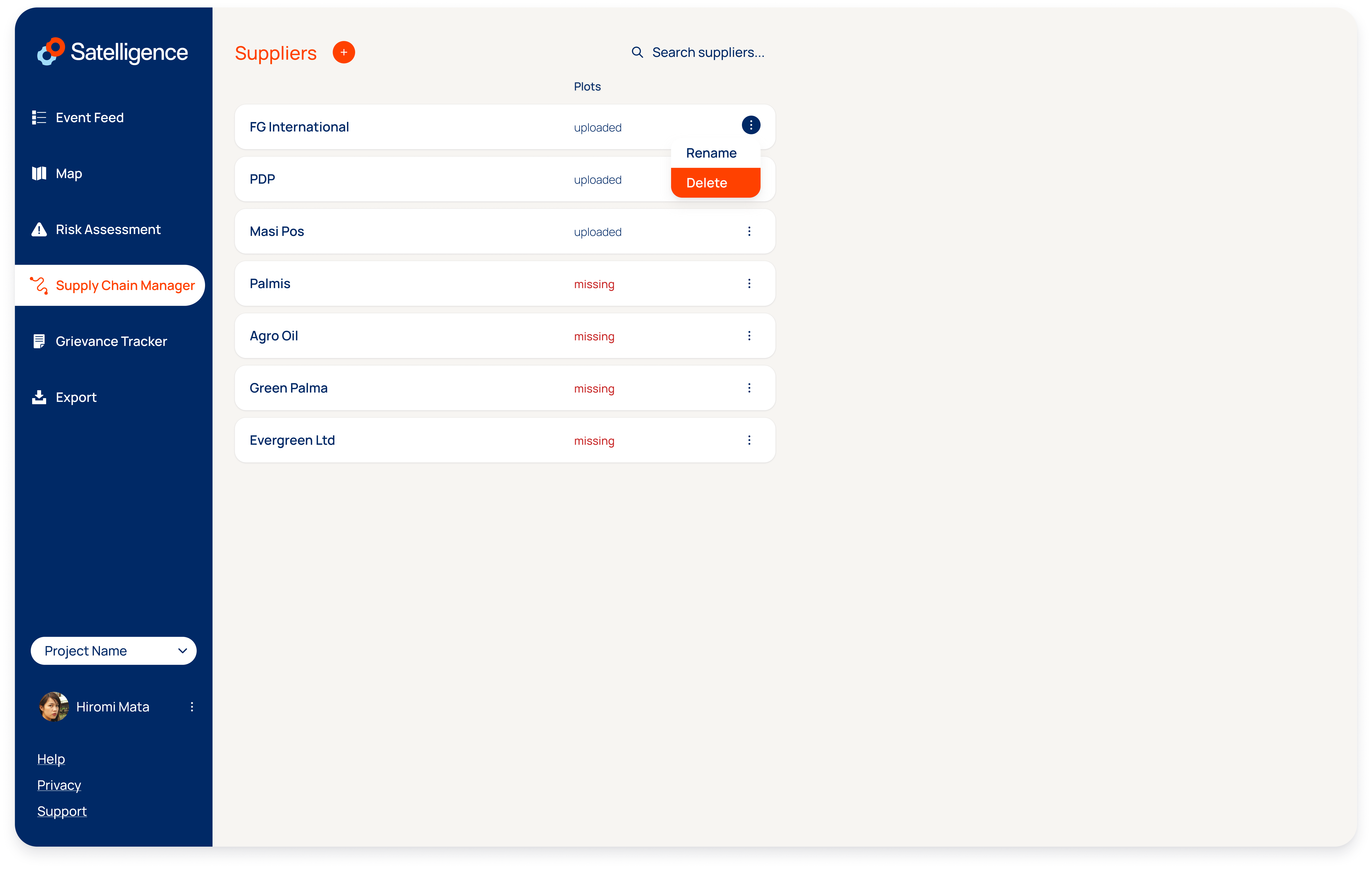 Contact support for when you already compiled a dataset of your supply chain data. This dataset can be a mill list or a file with all the plots of all your suppliers. Especially when your dataset covers many suppliers our support team can save you some time.